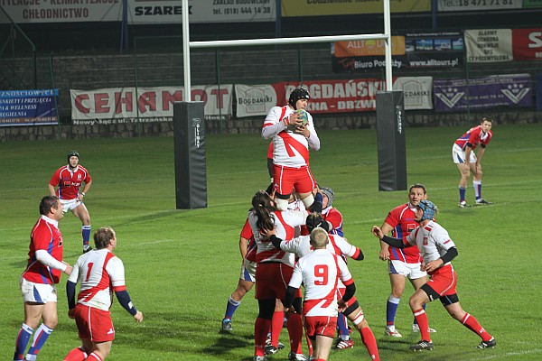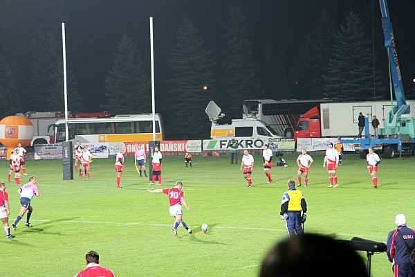 Ta akcja obudziła naszych reprezentantów, którzy praktycznie do końca pierwszej części meczu prowadzili grę na połowie rywala. Składne ataki, z dobrą pracą młyna i ładną, kombinacyjną grą ataku, skutkowały stwarzaniem coraz większego zagrożenia. W końcu po jednym z autów doskonale urwał się Kacper Ławski. Były zawodnik Budowlanych Łódź został zatrzymany przed linią końcową, ale akcję zdołał wykończyć Merab Gabunia, który tego dnia rozgrywał bardzo dobry mecz. David Chartier w trudnej sytuacji dorzucił dwa oczka z podwyższenia, co dało wynik 7:3, kilka minut później Chartierwykorzystał rzut karny i Polacy prowadzili już 10:3.