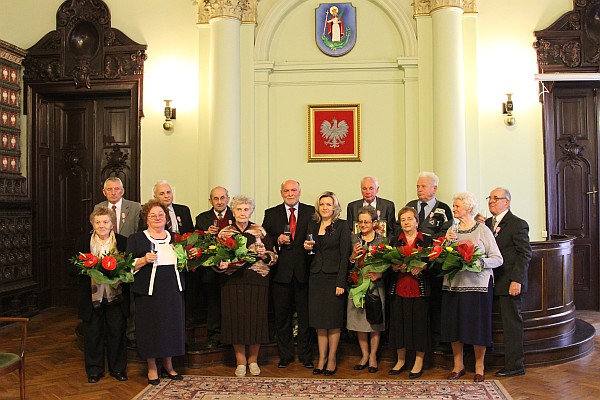 Najlepsze życzenia, wyrazy uznania oraz gratulacje złożyła również Kierownik Urzędu Stanu Cywilnego Małgorzata Antkiewicz-Wójs. Następnie wiceprezydent odznaczył jubilatów "Medalami za długoletnie pożycie małżeńskie" przyznanymi przez Prezydenta RP. Pary w prezencie otrzymały również kwiaty oraz upominki.