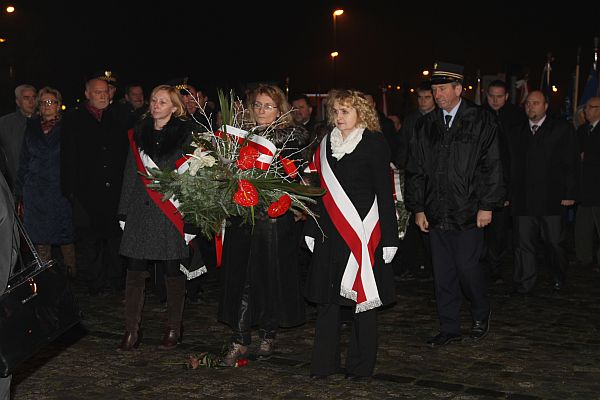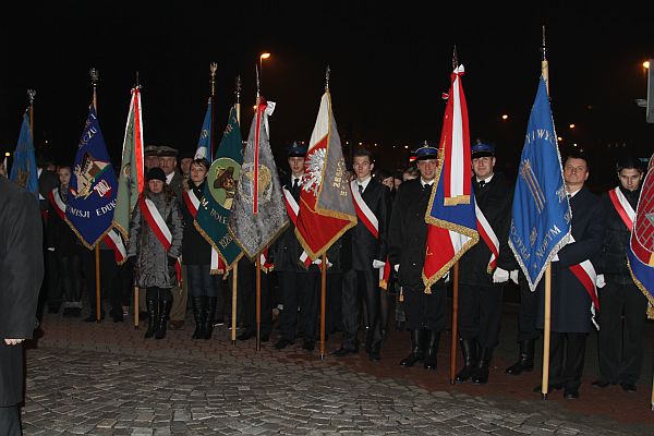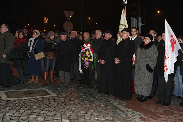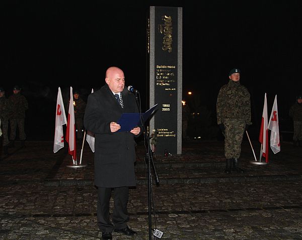 Następnie pod pomnikiem Solidarności złożono wiązanki kwiatów i zapalono znicze. Prezydent Ryszard Nowak mówił o solidarnościowym zrywie, wspomniał dramat grudniowej nocy i niepewność kolejnego dnia.