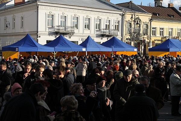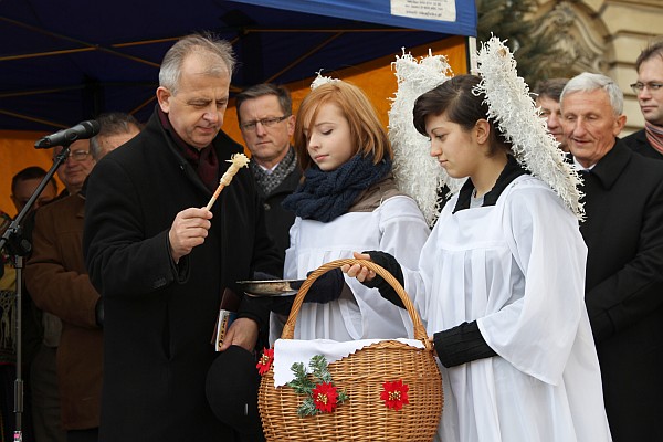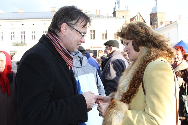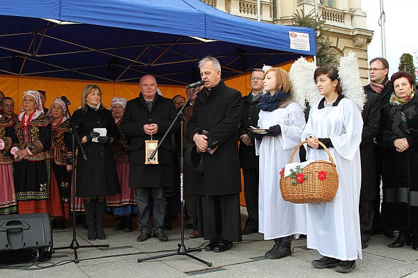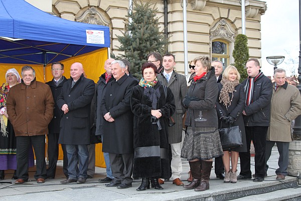 Na płycie Rynku pojawili się m.in.: prezydent Ryszard Nowak, wiceprezydenci: Bożena Jawor i Jerzy Gwiżdż, sądeccy posłowie, radni oraz ks. prałat Jan Piotrowski, który poświęcił opłatki.
