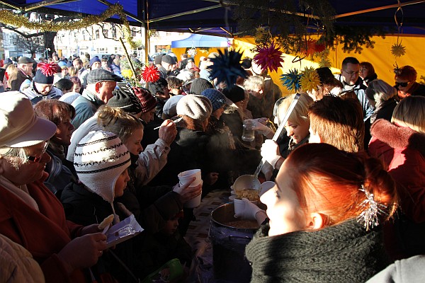 Sądecka Wigilia po raz kolejny zgromadziła mieszkańców Nowego Sącza, którzy przyszli na sądecki Rynek, aby złożyć sobie życzenia, przełamać się opłatkiem, wspólnie kolędować i skosztować tradycyjnych wigilijnych potraw, wśród których znalazło się 20 tysięcy różnych pierogów, kilkaset litrów barszczu czerwonego, zupy grzybowej oraz kapusty z grochem.