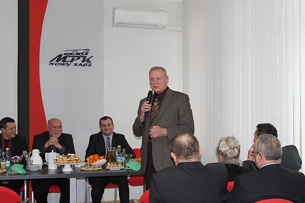 Tradycyjne spotkanie bożonarodzeniowo-noworoczne dla pracowników MPK zorganizowali prezesi sądeckiego przedsiębiorstwa Andrzej Górski i Józef Jarecki. Gośćmi spotkania byli: wiceprezydent Jerzy Gwiżdż, dyrektor Wydziału Komunikacji UM Sławomir Rybarski, doradca prezydenta – Leopold Cisoń, przewodnicząca Rady Nadzorczej Spółki Anna Lipińska-Zwolińska, a także Andrzej Szkaradek – szef sądeckich struktur „Solidarności” oraz przewodniczący NSZZ Solidarność Ryszard Lewandowski.