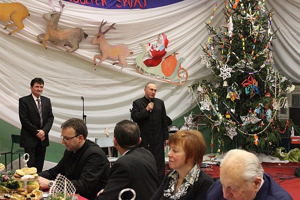 Uroczyste spotkanie, które odbyło się w budynku szkoły, rozpoczęły jasełka w wykonaniu uczniów. Po występie gości przywitał dyrektor placówki Janusz Chruślicki. Później był czas na życzenia, które zebranym złożyli również wiceprezydent Jerzy Gwiżdż oraz proboszcz parafii Matki Bożej Bolesnej ks. Antoni Koterla. Po części oficjalnej był czas na łamanie się opłatkiem, poczęstunek oraz wspólne kolędowanie.
