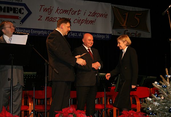 15-lecie świętowała spółka MPEC. Z tej okazji w sali MOK odbyła się uroczystość połączona z wręczeniem wyróżnień dla pracowników. Prezes MPEC Piotr Polek, po krótkiej filmowej prezentacji, podsumował ostatnie 15 lat. Mówił "ciepło" i od serca o pracownikach, klientach i sukcesach spółki. Dziękował firmom, z którymi sądecki MPEC współpracuje. Prezydent Ryszard Nowak gratulował jubileuszu i życzył satysfakcji z wykonywanej pracy. Gratulacje przekazali również wiceprezydent Jerzy Gwiżdż oraz parlamentarzyści Marian Cycoń i Andrzej Czerwiński, radna wojewódzka Marta Mordarska, radny Artur Czernecki w imieniu Stowarzyszenia "Beskidzkie Więzi", prezesi spółek oraz przedstawiciele firm współpracujących z MPEC.