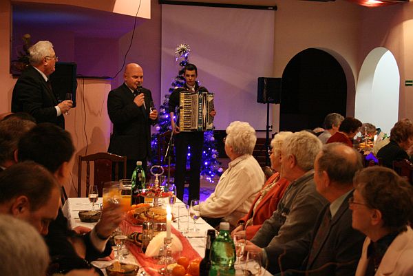 Życzenia, świąteczny obiad i wspólne kolędowanie - tak upłynęło wczorajsze popołudnie seniorom z osiedla Przetakówka. Tradycyjnie na spotkanie noworoczne zaprosił mieszkańców zarząd osiedla kierowany przez Stanisława Zelka. W spotkaniu uczestniczył również prezydent Ryszard Nowak, Przewodniczący Rady Miasta Jerzy Wituszyński oraz radny Grzegorz Fecko. Życzenia świąteczne złożył ojciec Władysław Łokieć. Życzenia kierował do polityków, władz miasta i mieszkańców. Wspomniał o rzeczach istotnych dla Nowego Sącza i Polski. Natomiast prezydent Ryszard Nowak życzył mieszkańcom dużo zdrowia, szczęścia i pomyślności w nowym roku. Podkreślił, że Przetakówka jest mu bliska, nie tylko z racji pełnionej funkcji, ale również dlatego, że tam mieszka. Prezydent podziękował Stanisławowi Zelkowi za zaangażowanie i pracę na rzecz mieszkańców. Później wszyscy zasiedli do uroczystego obiadu. Był również czas na wspólne kolędowanie.