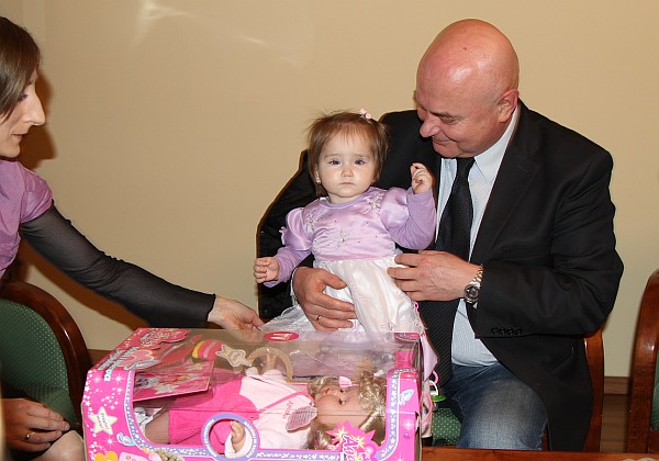 Dziewczynki po krótkiej chwili doskonale poczuły się w ratuszu. Ania zajęła się lalką, a Martynka interesowała się tym, co działo się w gabinecie prezydenta. Rodzice mieli okazję do rozmowy z prezydentem. Pani Jolanta przypomniała, że Martynka po urodzeniu ważyła nieco ponad 2 kg. „Była malutka, ale chowa się doskonale – dodała z uśmiechem. Jest zdrowa, wesoła i dobrze rozumie się ze starszą Anią.”