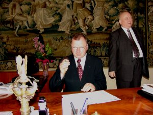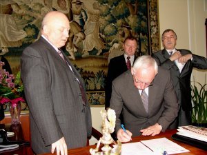 1. Dokumenty stowarzyszenia w obecności marszałka Oleksego podpisuje prezydent Józef Antoni Wiktor.