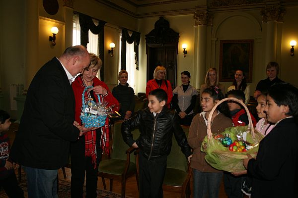 Dzieci romskie ze szkół podstawowych 8,9, Zespołu Szkół Podstawowo-Gimnazjalnych nr 1 oraz z Maszkowic wraz z opiekunami działającymi pod auspicjami Małopolskiego Centrum Doskonalenia Nauczycieli odwiedziły sądecki ratusz i na ręce wiceprezydenta Jerzego Gwiżdża przekazały świąteczne życzenia.