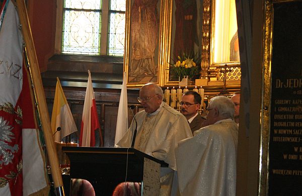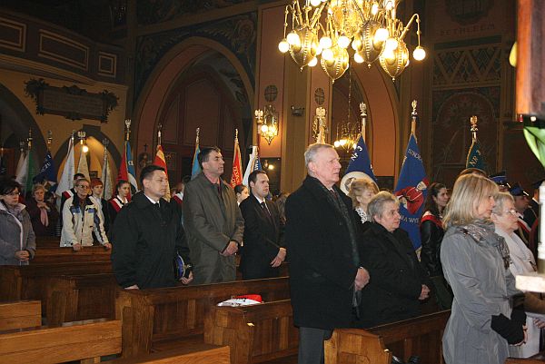 Uroczystości związane z 72. rocznicą zbrodni katyńskiej rozpoczęły się mszą świętą odprawioną w kościele św. Kazimierza. Mszy św. przewodniczył ks. prałat Stanisław Czachor. W homilii ks. proboszcz Kazimierz Siedlarz przypomniał o pomordowanych polskich oficerach. „Była to największa zbrodnia ludobójstwa, ukryta prawda – mówił ks. Siedlarz. Obowiązkiem każdego Polaka jest kultywowanie pamięci o tym, co wielkie, ale również o tym, co tragiczne. Katyń to ostrzeżenie, przestroga. Mamy obowiązek pamiętać, nie zapomnieć, ale w imię Chrystusa przebaczać” - powiedział na zakończenie ks. Siedlarz.