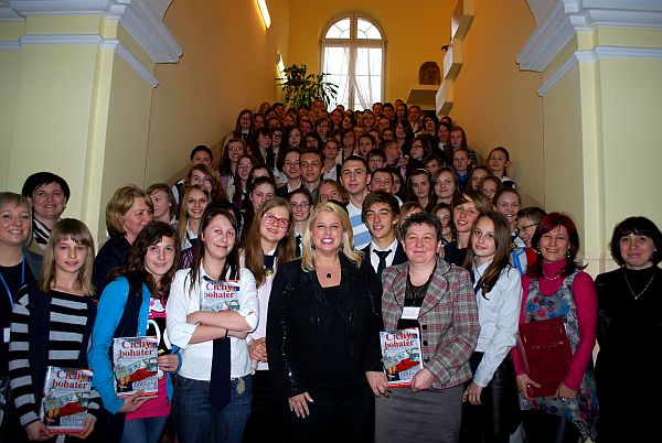 Rita Cosby odwiedziła również sądecką młodzież. Gościła m.in. w Gimnazjum nr 11 im. Adama Mickiewicza w Nowym Sączu.