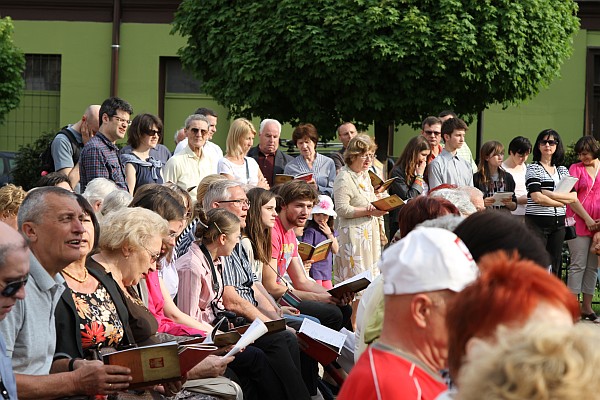 Po południu również na Placu 3 Maja odbyło się tradycyjne śpiewanie pieśni patriotycznych „Witaj Majowa Jutrzenko”. W tym roku tancerze z zespołu Regionalnego Sądeczanie zatańczyli poloneza. Następnie śpiewano pieśni patriotyczne i piosenki maryjne, a wokaliści z MOK recytowali wiersze i intonowali poszczególne pieśni.
