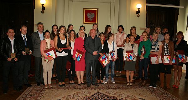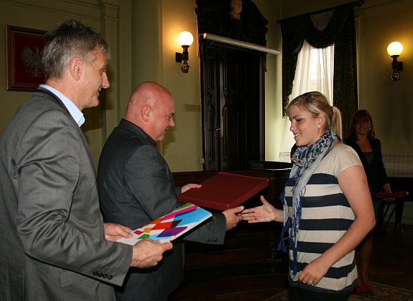 Prezydent gratulował sukcesów i wręczył pamiątkowe grawertony i dyplomy. W sali ratuszowej gościły Katarzyna Łakomska, Karolina Szczurek, Magdalena Lorek, Agnieszka Podrygała, Katarzyna Wańczyk, Małgorzata Śliwa, Anita Sikorska, Elżbieta Skorup, Kamila Szczecina, Victoria Panasiuk, Agnieszka Rusin ( Dąbrowska ), Marzena Polanowska, Katarzyna Kawa, Joanna Gadzina, Małgorzata Raczka, Sylwia Sroka, Żaneta Moskal, Anna Maślanka, Jolanta Kamińska, Agnieszka Leśniak i Karolina Płachta. Nie zabrakło trenerów: Lucyny Zygmunt oraz Mariana Gawędy, prezesa Tomasza Michałowskiego i wiceprezesa Karola Basty.