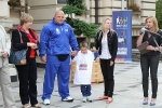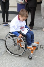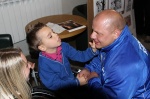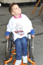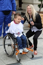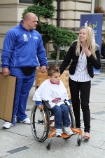 Dla Nikodema bardzo ważną osobą w tym dniu był TOMASZ KOWAL, SRTONGMAN, którego jak tylko zobaczył wyrywał się do niego i nie chciał zejść z jego rąk – był to chyba najwspanialszy widok dla wszystkich – wielki uśmiech Nikodema, który mówił, że nie jest już Nikodemem tylko siłaczem…, a Sponsorzy Tomka – Zarząd firmy ERBET (prezes Tomasz Ćwikowski, Roman Słowik i Rafał Stanuszek) jako pierwsi odezwali się na apel pomocy w zbiórce i zasilili konto zakupu wózka.