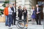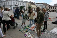 Wszyscy na placu niecierpliwie wyczekiwali na prezent – upominek dla Nikodema! Kiedy wjechał na plac wózek Nikodem był chyba najszczęśliwszy – zaraz przymierzył i już nie chciał zejść!!! Szalał po całym placu i wewnątrz ratusza. Dla Tomka Kowala też była niespodzianka obraz – grafika przedstawiająca Sądecki Ratusz, który podarowała Agata Rolka, kierownik działu plastycznego, dziękując mu za przyjazd do Nowego Sącza na jej zaproszenie.