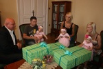 Zuzia, Lena i Tosia - nowosądeckie trojaczki odwiedziły dzisiaj prezydenta Ryszarda Nowaka oraz zastępców Bożenę Jawor i Jerzego Gwiżdża. Okazją były ich pierwsze urodziny. Dokładnie rok temu 3 lipca w krakowskim szpitalu przyszły na świat.Podczas spotkania z prezydentem rodzice opowiadali o dziewczynkach, ich zainteresowaniach i osobowościach. „Zuzia wyraźnie dominuje, Lena jest bardzo konsekwentna, a Tosia uwielbia przeglądać się w lustrze. Dziewczynki są zdrowe,zaczęły raczkować, mówią pierwsze słowa. Dzisiaj wieczorem obchodzić będą swoje pierwsze urodziny w gronie rodziny."Spotkanie w gabinecie prezydenta przebiegało w miłej atmosferze. Dziewczynki opuściły ratusz z urodzinowymi prezentami.