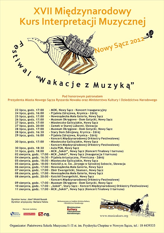 W najbliższą niedzielę (22 lipca) rozpoczyna się XVII Międzynarodowy Kurs Interpretacji Muzycznej i towarzyszący mu Festiwal „Wakacje z Muzyką” organizowany przez Państwową Szkołę Muzyczną I i II stopnia im. Fryderyka Chopina w Nowym Sączu.