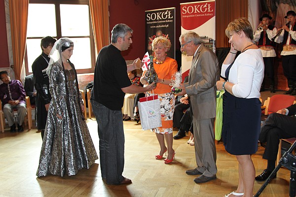 Następnie w Małopolskim Centrum Kultury SOKÓŁ odbyło się spotkanie kierowników grup festiwalowych z przedstawicielami władz miasta i regionu. Gości witali wiceprezydent Bożena Jawor, Przewodniczący Rady Miasta Jerzy Wituszyński, radni wojewódzcy Marta Mordarska i Leszek Zegzda, radna Elżbieta Chowaniec, Ryszard Paradowski reprezentujący Zarząd Powiatu Nowosądeckiego oraz przedstawiciele Rady Artystycznej Festiwalu.