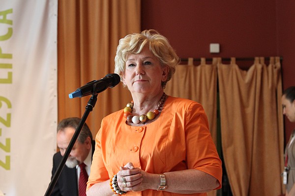 „Serdecznie witam tych gości, którzy przyjechali kilka tysięcy kilometrów i tych, którzy przyjechali kilkadziesiąt - mówiła wiceprezydent Bożena Jawor witając uczestników festiwalu. Przy okazji tego pięknego jubileuszowego festiwalu muszę powiedzieć jedno - nie byłoby was tutaj dzisiaj, gdyby 20 lat temu pan dyrektor Malczak, osoby mu towarzyszące, jak również ówczesny wiceprezydent Nowego Sącza, Leszek Zegzda, nie mieli odwagi podjąć tej decyzji. Chwała wam za to, gdyż jest to najlepsza promocja naszego królewskiego ukochanego miasta. Wszystkim gościom życzę z całego serca - czujcie się tutaj jak u siebie w domu. Wiem, że spotkacie się z wielką serdecznością, a dziś na koncercie przywita was tłum sądeczan.”