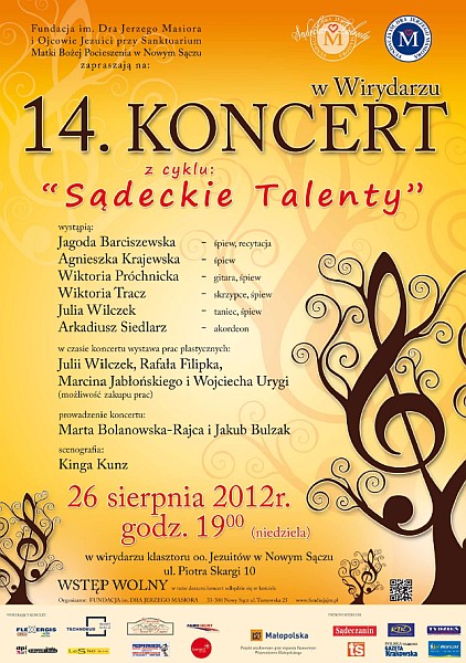 Zapraszamy 26 sierpnia o godz. 19.00 do wirydarza oo. Jezuitów przy ul. Piotra Skargi 10. W razie deszczu koncert odbędzie się w kościele.