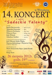 Zbliża się kolejny, już 14. Koncert w Wirydarzu z cyklu "Sądeckie Talenty". Przed nami występy wielu uzdolnionych artystów i, co stało się już tradycją, wystawa prac plastycznych.