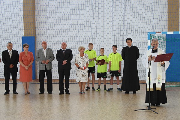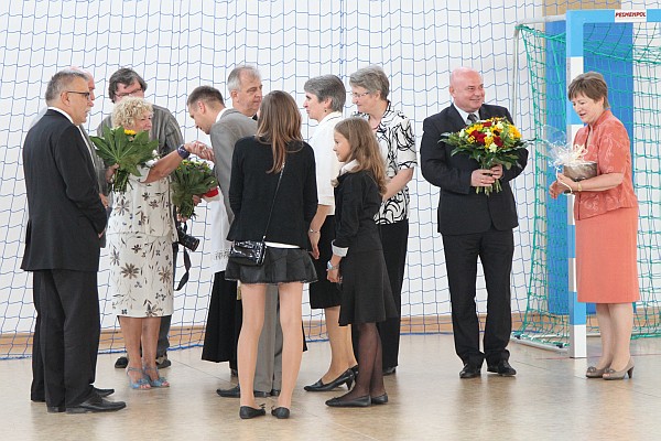 Oficjalne otwarcie hali zbiegło się z rozpoczęciem nowego roku szkolnego. Symboliczną wstęgę przecięli prezydent Nowego Sącza Ryszard Nowak, wiceprezydenci Bożena Jawor i Jerzy Gwiżdż oraz dyrektor Gimnazjum nr 2 Joanna Wituszyńska wraz z dyrektorem SP 3 Andrzejem Hasslingerem. Następnie ks. prałat Jan Piotrowski poświęcił obiekt. Prezydent Ryszard Nowak nie ukrywał radości z otwarcia nowego obiektu sportowego. „Ta hala ma służyć obu szkołom, ma przede wszystkim być dla uczniów i służyć do rozwijania ich pasji sportowych - mówił prezydent. Dziękuję radnym, dyrektorom szkół, przy których znajduje się obiekt, oraz wykonawcom”. Dyrektorzy oraz przedstawiciele Rady Rodziców podziękowali władzom miasta za decyzje, które miały wpływ na powstanie tak funkcjonalnej hali sportowej. Wykonawcy - Firmie Grinbud wręczono pamiątkowy grawerton. Gratulacje przekazali parlamentarzyści obecni na otwarciu hali oraz zaproszeni goście, wśród których znaleźli się radni Rady Miasta, przedstawiciele Kuratorium Oświaty, służb mundurowych, dyrektorzy szkół, projektanci, wykonawcy, uczniowie oraz rodzice dzieci, uczących się w szkołach, przy których powstała hala.