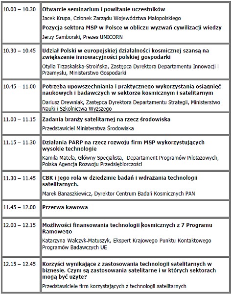 Seminarium ma na celu zachęcenie MSP do stosowania osiągnięć technologii satelitarnych poprzez przedstawienie wynikających z tego korzyści ekonomicznych, w szczególności zaś: