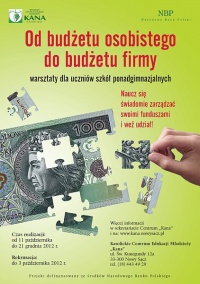 Katolickie Centrum Edukacji Młodzieży "Kana" zaprasza uczniów szkół ponadgimnazjalnych na warsztaty pn. „Od budżetu osobistego do budżetu firmy”.