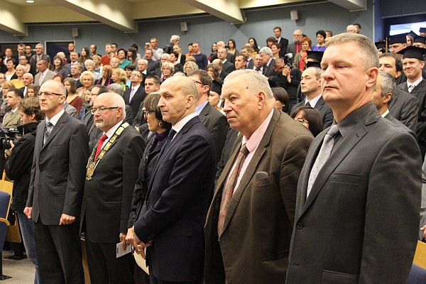Tradycyjnie, przybyłych gości powitał prezydent WSB-NLU dr Krzysztof Pawłowski, który na zakończenie swojego wystąpienia przekazał łańcuch - symbol uczelnianej władzy - rektorowi dr. Wiktorowi Patenie.