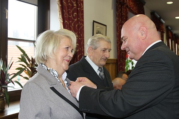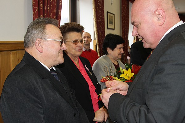 Prezydent Ryszard Nowak złożył świętującym parom gratulacje oraz najlepsze życzenia. „Tyle lat na dobre i na złe, to dowód na to, że miłość potrafi łączyć. Życzę, aby następne lata upływały świątecznie, jak dzisiaj, w zdrowiu, szczęściu i przy obfitości innych łask” – powiedział prezydent. Następnie odznaczył jubilatów "Medalami za długoletnie pożycie małżeńskie" przyznanymi przez Prezydenta RP. Pary w prezencie otrzymały również kwiaty, upominki oraz pamiątkowe albumy. Na zakończenie, przy symbolicznej lampce szampana, rodzina i przyjaciele odśpiewali świętującym tradycyjne „Sto lat” oraz złożyli życzenia. Był również czas na pamiątkowe zdjęcia.