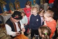 23 stycznia w Centrum Informacji Turystycznej w Nowym Sączu zagościły dzieci z przedszkoli „Promyczek” i „Tęcza” oraz rodzice z dziećmi. Dzieci miały możliwość pobawienia się drewnianymi samochodzikami, konikami, cymbałkami, dinozaurami, grzechotkami, bączkami. Zabawki zaskoczyły dzieci swoim wykonaniem i prostotą. Do świata drewnianych zabawek wprowadzał ich sam mistrz i czarownik dłuta Marian Mółka. W czasie spotkania powstały kolorowe prace dzieci, nawiązujące do prac pana Mółki.