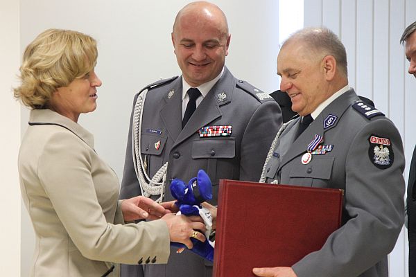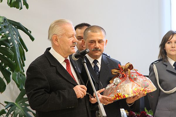 Również wojewoda Jerzy Miller skierował do komendanta Henryka Koziała kilka słów. „Wychował Pan dwa pokolenia policjantów. Nie jednego już żegnałem, ale z Pańskim stażem po raz pierwszy. Służył Pan w różnych miejscach, w różnym czasie. Zostawia Pan po sobie również ten budynek, tak nowoczesny, jak przestarzały był poprzedni. To Pana zasługa i Pana sukces. Pana podwładni podkreślają, że zaszczytem było służyć pod Pana komendą. To jest chyba najlepsze, co może spotkać każdego przełożonego.”