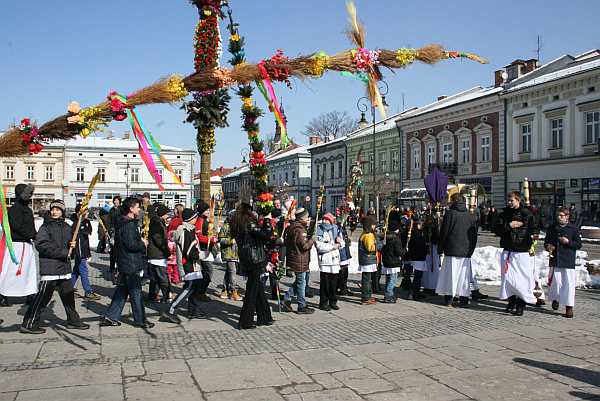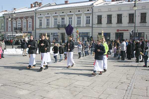 Od poświęcenia palm na sądeckim Rynku rozpoczęły się uroczystości Niedzieli Palmowej w Bazylice Kolegiackiej św. Małgorzaty. Tradycyjnie procesja pod przewodnictwem ks. prałata Jana Piotrowskiego wyruszyła z bazyliki kwadrans przed niedzielną sumą. Ks. prałat na Rynku poświęcił najwyższą palmę zdobiącą sądecki Rynek oraz palmy, które przynieśli mieszkańcy. Następnie odprawiona została msza św., a po niej odbył się konkurs palm wielkanocnych.
