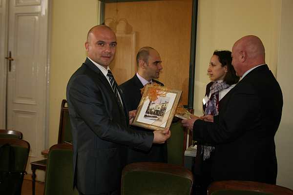 Prezydent Ryszard Nowak powitał członków oficjalnej delegacji z partnerskiego miasta Gabrovo w Bułgarii. To kolejna wizyta kadry zarządzającej Gabrova, która realizuje projekt “Rozwój potencjału ludzkiego – czynnik w rozwoju nowoczesnej europejskiej administracji miejskiej”. Tym razem w projekcie uczestniczą: Zastępca Prezydenta Miasta inż. Kliment Kunew, Sekretarz Polina Tihowa, Przewodniczący Rady Miasta Nikołaj Syrakow i dyrektor Wydziału "Edukacja i działalności społeczne” - Danieła Wasylewa. Prezydent Ryszard Nowak witając gości w Nowym Sączu życzył miłego pobytu w naszym miesicie i wyraził nadzieję, że realizacja projektu przyniesie efekty dla obydwu miast. „Podobną współpracę prowadziliśmy już z naszymi miastami partnerskimi z Niemiec i Słowacji. Można powiedzieć, że ta wymiana doświadczeń, praktyki w urzędach przyniosły efekty. Wierzę, że będzie podobnie, a pobyt w Nowym Sączu zaowocuje wymianą doświadczeń, poznaniem nowoczesnych metod zarządzania i wykorzystania praktyk, które sprawdziły się w funkcjonowaniu naszego urzędu. Jeśli jest okazja skorzystania ze środków zewnętrznych, aby wymieniać doświadczenia - to warto korzystać jak najwięcej” - mówił prezydent Ryszard Nowak. Natomiast zastępca prezydenta Gabrova Kliment Kunew podkreślił, że współpraca pomiędzy Nowym Sączem a Gabrovem dzięki realizacji wspólnego projektu jeszcze bardziej się pogłębi. „Mam nadzieję, że poprzez realizację projektu będziemy mogli znaleźć jak najlepszy model współpracy, że to co teraz realizujemy zaowocuje na przyszłość w postaci współpracy pomiędzy biznesem z Nowego Sącza a Gabrovem. A jest to bardzo ważny projekt, ponieważ dotyczy zarządzania zasobami ludzkimi, podniesienia kwalifikacji pracowników” - dodał zastępca prezydenta Gabrova Kliment Kunew.