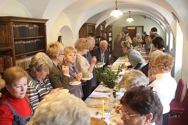 Tradycyjne „Święcone” zorganizowali wczoraj członkowie sądeckiego oddziału Towarzystwa Miłośników Lwowa i Kresów Południowo-Wschodnich, z prezesem Bolesławem Biłowusem na czele. Spotkanie rozpoczęło się wspólną modlitwą wkaplicy p.w. św. Stanisława Kostki przy parafii Świętego Ducha w Nowym Sączu. O. Wojciech Łokieć SJ, prezes Bolesław Biłowus a także wiceprezydent Bożena Jawor złożyli Lwowiakom najlepsze życzenia, a następnie goście zasiedli przy stole dzieląc się jajkiem. Tradycyjnie podczas spotkania serwowano potrawy kuchni kresowej. Była to nie tylko okazja do złożenia sobie życzeń, ale przede wszystkim do wspólnej rozmowy, wspomnień, a także planowania wyjazdów na Kresy.