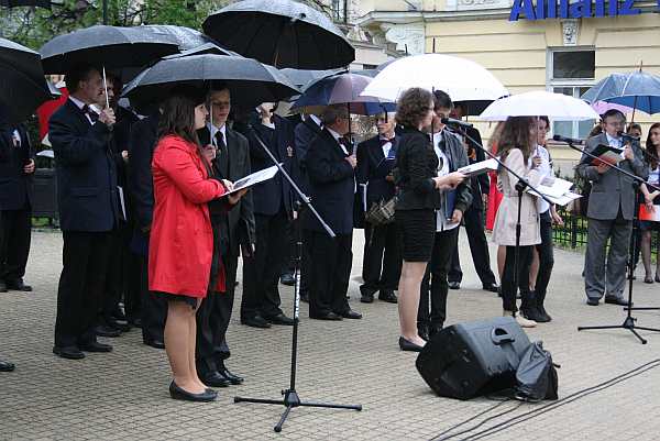 Trzeciomajowe uroczystości zakończyły się tradycyjnym patriotycznym śpiewaniem "Witaj Majowa Jutrzenko". Pomimo deszczu dało się zaśpiewać kilka utworów. Tegoroczne wspólne śpiewanie pieśni patriotycznych na Placu 3 Maja uświetniły chóry z Nowego Sącza Echo 2 oraz Egeru oraz wokaliści i recytatorzy z MOK. Wszyscy uczestnicy otrzymali tradycyjne śpiewniki.