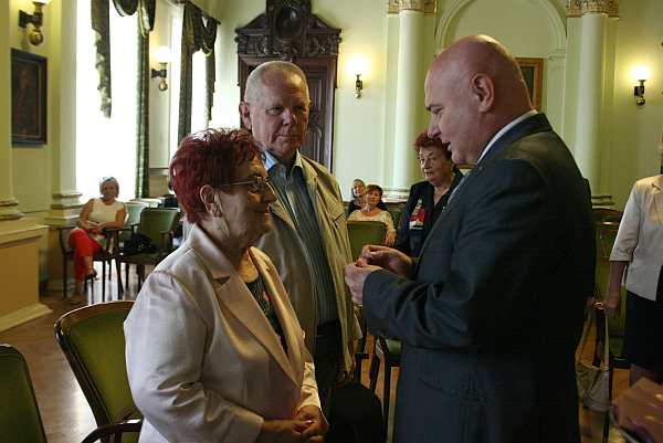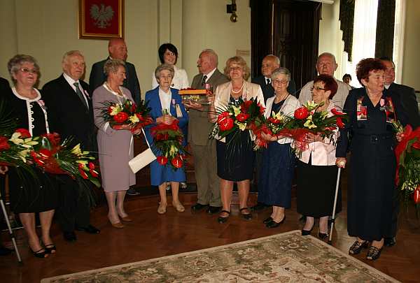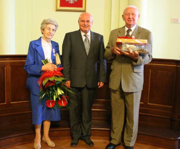 „Pięćdziesiąt lat to wiele, a przeżycia w ciągu tych długich lat – radości i smutki związały Państwa jeszcze bardziej. Przez te wszystkie lata troszczyli się Państwo o zapewnienie bytu rodzinie, o dobre wychowanie dzieci i ich przyszyły los. A dzisiaj dzieci, wnuki i prawnuki są Wam wdzięczni za trud i poświęcenie oraz darzą Was wielkim szacunkiem. Medale te są podziękowaniem za wszystko, co tak długo Państwo budowaliście jako małżeństwo i rodzina. Swój związek zbudowaliście na miłości, wierności i uczciwości małżeńskiej, co pozwoliło Wam wytrwać razem tyle lat i teraz świętować z nami swój Jubileusz” – powiedziała zastępca kierownika USC Monika Lichoń. Prezydent Ryszard Nowak składając Jubilatom życzenia podkreślił, że poprzez wspaniały wzór dobrego, małżeńskiego życia i wychowanie dzieci, są dumą naszego miasta. „Życzę zdrowia, radości, jak najwięcej wspaniałych chwil, których na pewno nie brakowało w Państwa małżeństwie, miłości ze strony najbliższych i przyjaciół. Wszystkiego najlepszego” – dodał prezydent. Następnie Jubilaci otrzymali krzyże za długoletnie pożycie małżeńskie przyznane przez Prezydenta RP.