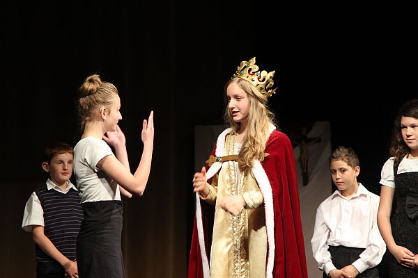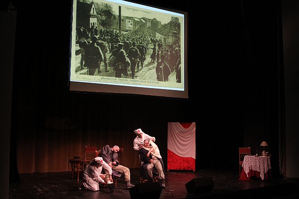 Społeczność szkoły i zaproszeni goście obejrzeli widowisko przygotowane przez nauczycieli i uczniów placówki, w którym odegrano scenki historyczne dotyczące najważniejszych wydarzeń z życia szkoły, miasta i kraju.