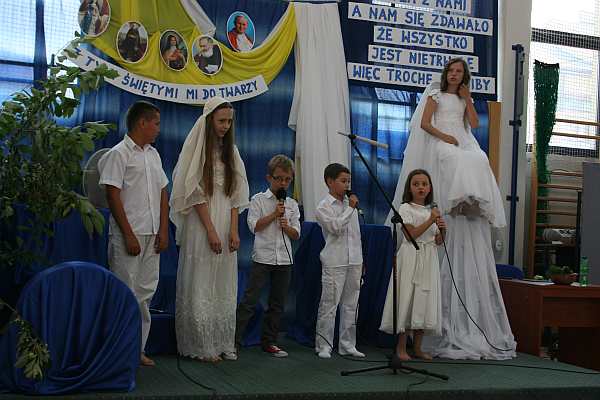 Dyrektor szkoły Halina Węgrzyn podsumowując minione lata przypomniała, że pierwsze pięć - to czas,w którym realizowano inwestycje wokół szkoły. Budowano halę i boiska. Kolejne, to okres podnoszenia kwalifikacji przez pedagogów. Ostatnie pięć, to czas wielkiej pracy uczniów i pedagogów, co zaowocowało wielkimi sukcesami w konkursach przedmiotowych. Jak podkreśliła dyrektor Halina Węgrzyn szkoła cały czas realizuje naukę Ojca Świętego, a słowa, „Wymagajcie od siebie, nawet jeśli inni by od was nie wymagali” są wyzwaniem dla nauczycieli, rodziców i uczniów.