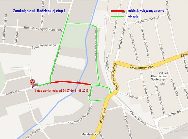 Wyłączenie z ruchu odcinka ul. Radzieckiej - od ul. Barbackiego do ul. Bema. Czas trwania robót – 24.07.2013 r. - 31.08.2013 r.
