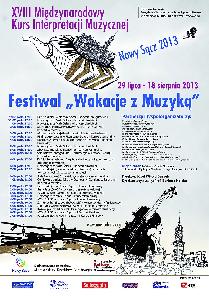 W poniedziałek (29 lipca) rozpoczyna się XVIII Międzynarodowy Kurs Interpretacji Muzycznej i towarzyszący mu Festiwal „Wakacje z Muzyką” organizowany przez Państwową Szkołę Muzyczną I i II stopnia im. Fryderyka Chopina w Nowym Sączu. Impreza ta cieszy się niesłabnącym powodzeniem i zainteresowaniem zarówno muzyków jak i melomanów.