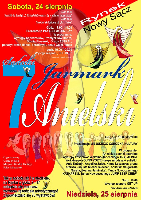 W najbliższy weekend (sobota i niedziela, 24 i 25 sierpnia) prezydent Nowego Sącza zaprasza na sądecki Rynek na kolejny, siódmy Jarmark Anielski.
