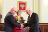 Prezydent Ryszard Nowak dziękując Janowi Firstowi za długoletnią działalność i wkład w rozwój lokalnego rynku pracy wręczył mu pamiątkową statuetkę.