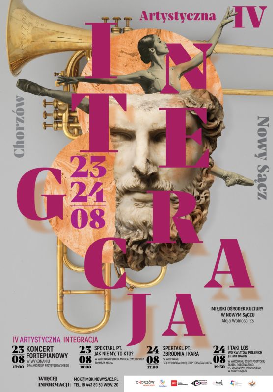 W dniach 23 – 25 sierpnia w Miejskim Ośrodku Kultury w Nowym Sączu odbędzie się IV edycja Integracji Artystycznej CHORZÓW - NOWY SĄCZ. Przed nami ciekawe koncerty, rewia oraz spektakle taneczno-muzyczno-teatralne. Wstęp na wszystkie wydarzenia wolny.
