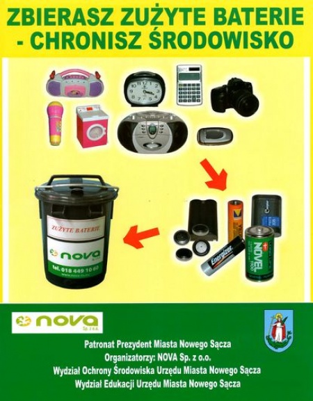 Już po raz 12. Spółka NOVA oraz Wydział Edukacji i Wydział Ochrony Środowiska Urzędu Miasta Nowego Sącza prowadzą akcję pod hasłem „Zbierasz zużyte baterie – chronisz środowisko”, która skierowana jest do uczniów nowosądeckich szkół i przedszkoli. Akcję tradycyjnie swoim patronatem objął Prezydent Miasta Nowego Sącza Ryszard Nowak.