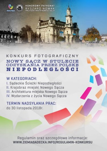 Do 30 listopada można nadsyłać prace na konkurs fotograficzny "Nowy Sącz w stulecie odzyskania przez Polskę Niepodległości”. W konkursie może wziąć udział każdy, kto ukończył 16 lat. Na zwycięzców czekają atrakcyjne nagrody.