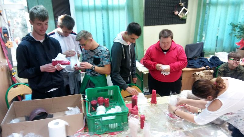 Młodzież z Zespołu Szkół nr 5 Specjalnych oraz działające przy niej Stowarzyszenie Virtus, realizują projekt pod hasłem „Terapia, Edukacja, Wychowanie przez Pracę”. W ramach zajęć, chcąc uczcić 100-lecie odzyskania niepodległości Polski, podopieczni szkoły przygotowali białe i czerwone świece ze 100 kilogramów parafiny.