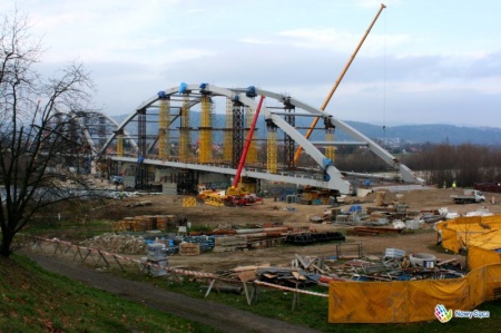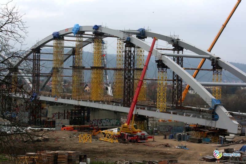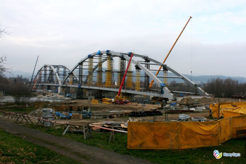 Obecnie zamontowany został łuk od strony osiedla Helena, demontowane są podpory tymczasowe, które służyły do montażu łuków. Na ukończeniu jest również łuk od strony Nowego Sącza.