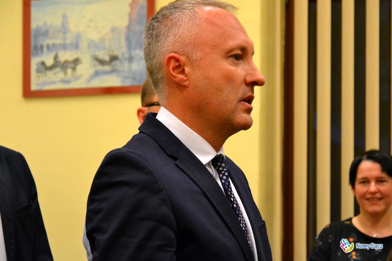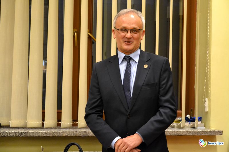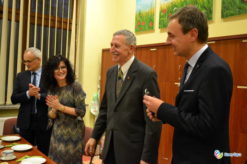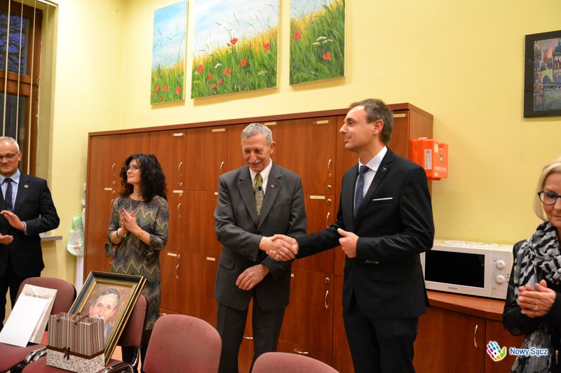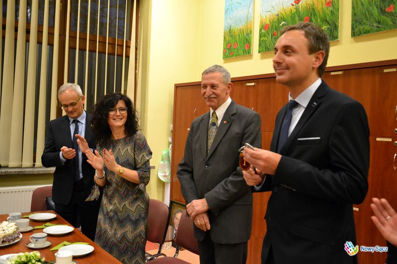- Dlaczego przejście pana dyrektora Andrzeja Rybskiego na emeryturę wymaga uroczystej oprawy? – pytał w imieniu rady pedagogicznej nauczyciel historii Jakub Bulzak i argumentował: - Pan dyrektor jest matematykiem, więc pozwolę sobie zacząć od argumentów liczbowych: wśród nauczycieli, którzy pracują obecnie w szkole i internacie, tylko czternaście osób nie zostało zatrudnionych przez pana Rybskiego, wszyscy pozostali mają na angażu jego podpis. Pan dyrektor ze szkołą jest związany od pierwszego września 1964 roku, kiedy po zdanym egzaminie wstępnym zaczął być uczniem tej szkoły, co daje pięćdziesiąt cztery lata, co stanowi dwadzieścia siedem procent historii szkoły. Dyrektorem jest przez dwadzieścia siedem lat, co stanowi trzynaście i pół procent historii szkoły. Jest to oczywiście rekord – drugi w kolejności Ludwik Klemensiewicz urzędował tylko trzy lata krócej. Aleksander Rybski był pierwszym dyrektorem, którego wybrano w drodze otwartego konkursu, był pierwszym dyrektorem trzeciej Rzeczypospolitej. Zatem czy się to komuś podoba czy nie, pan dyrektor Aleksander Rybski przeszedł do historii nie tylko szkoły, ale i Nowego Sącza i Sądecczyzny.