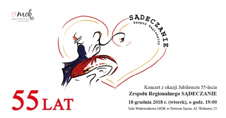 Dwoma galowymi koncertami w sali widowiskowej Miejskiego Ośrodka Kultury w Nowym Sączu, w dniach 15 i 18 grudnia 2018 roku, działający pod patronatem tej instytucji Zespół Regionalny „Sądeczanie” świętował będzie jubileusz 55-lecia swojego istnienia.