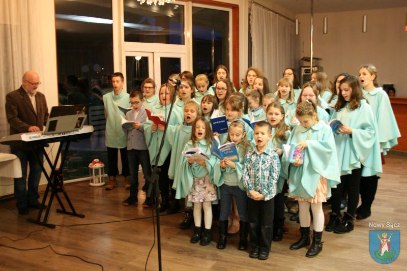 Wspólnemu kolędowaniu akompaniowały dzieci z zespołu Iskierki, modlitwę poprowadził o. Józef Polak – proboszcz parafii pw. Ducha Świętego w Nowym Sączu. Zebranych gości przywitał, w imieniu prezydenta Nowego Sącza Ludomira Handzla, radny miejski Krzysztof Ziaja.